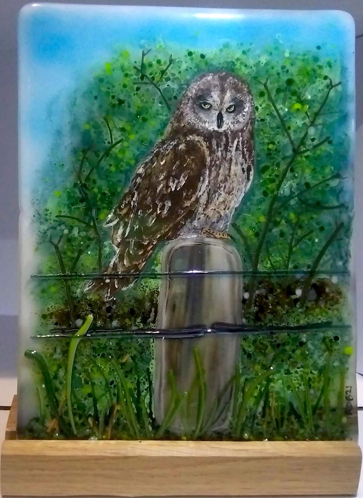 This brooding owl is a common sight in Sanday. These beautiful Owls are known as ‘Catty-face” in Orkney. Inspired by the many Owl rescues I've helped with over the years. Complete with oak stand.